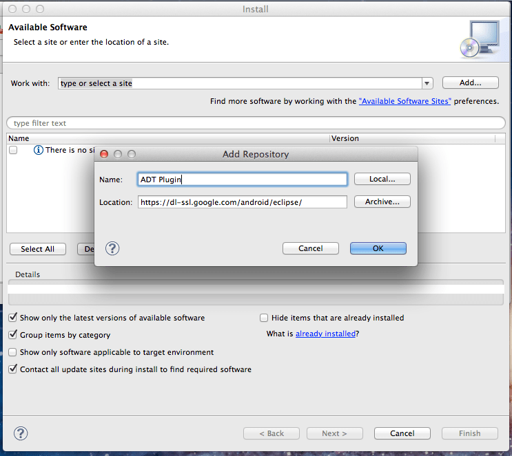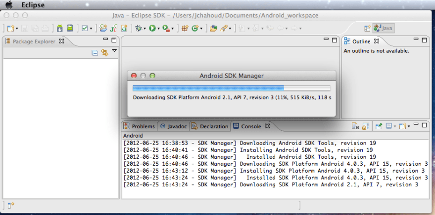 Nesse artigo vou explicar como preparar um ambiente de desenvolvimento Android. Basicamente são necessários quatro passos para criação de um ambiente de desenvolvimento: (1) Download e instalação do Eclipse, (2) download e instalação do plugin do Eclipse ADT, (3) Download e instalação do SDK do Android e (4) Download de pacotes e plataformas adicionais. Esses passos serão detalhados a seguir. Para referência, estou utilizando um Mac OS 10.7.4.