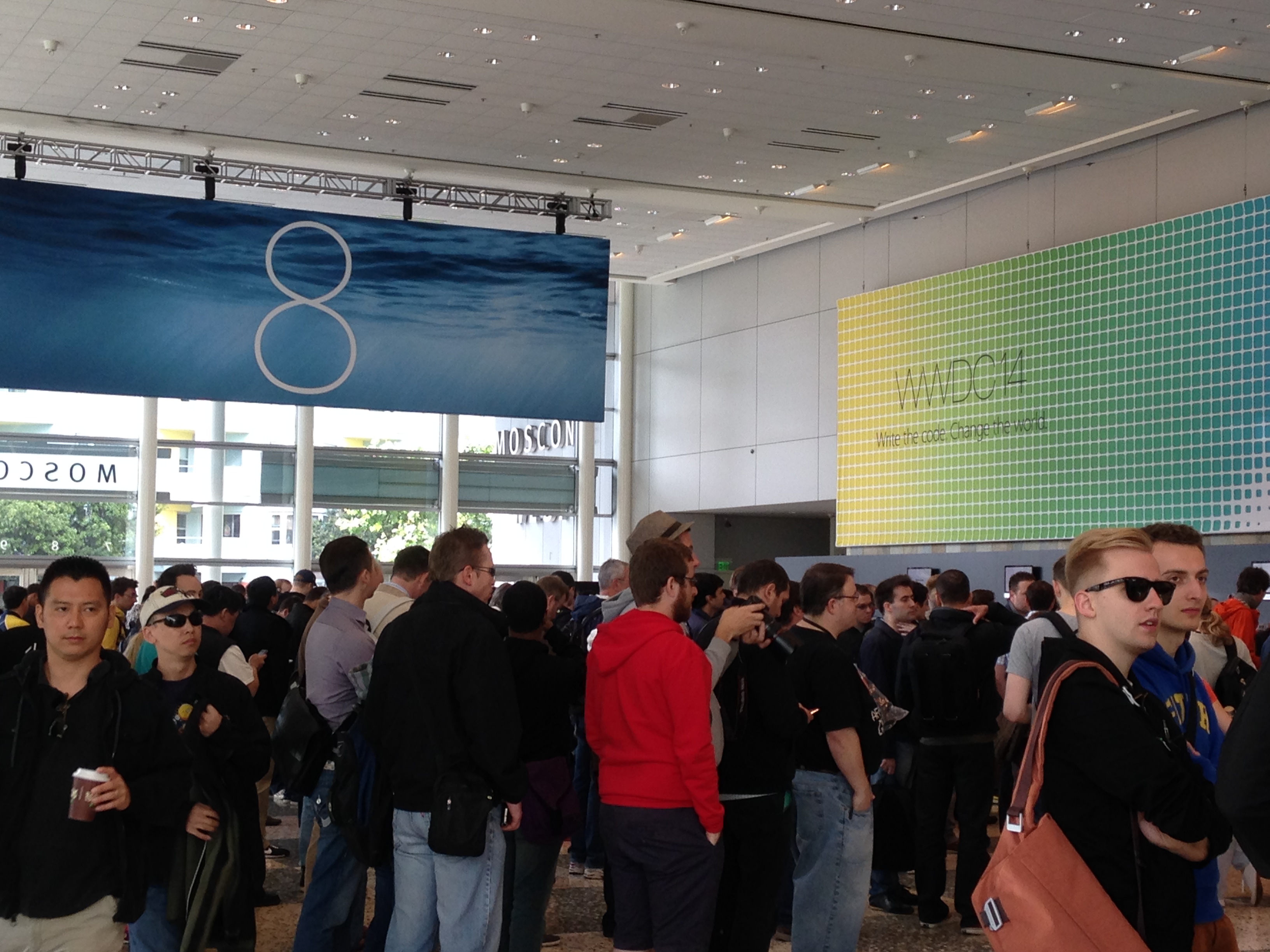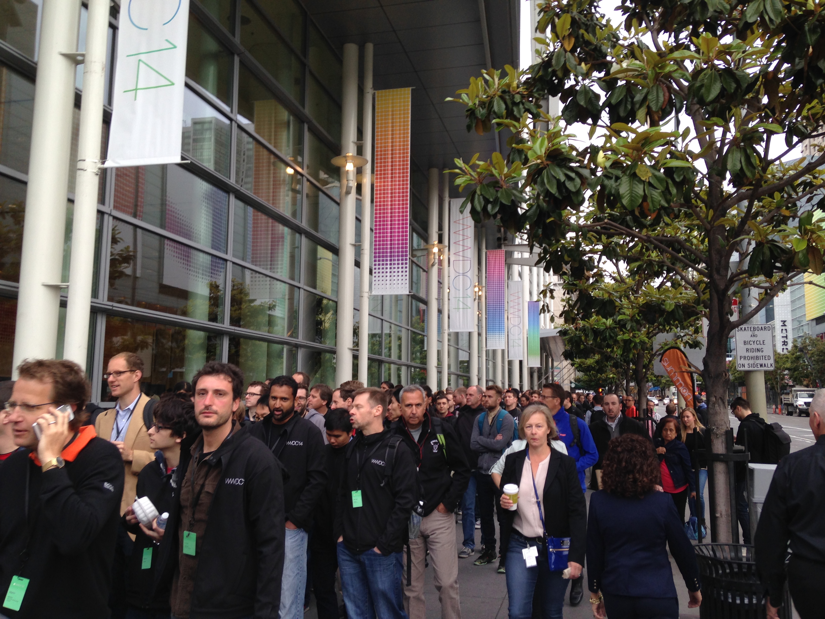 Durante o dia as pessoas já formavam filas para retirar a pulseira do WWDC Bash, a festa oficial da Apple que iria ocorrer na parte da noite.