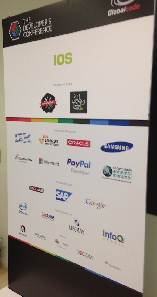 Com muita satisfação, fui palestrante da trilha de iOS do evento. A trilha foi organizada pelo CocoaHeads BR e Appsterdam BR e contou com um total de sete palestras, que foram: