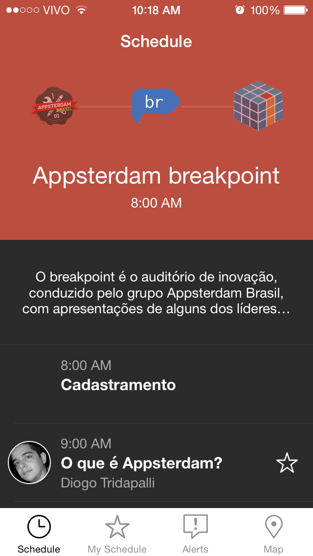 Nosso objetivo era realizar a primeira conferência do Appsterdam no Brasil e contamos com a parceria da iMasters, que nos apoiou fornecendo um excelente espaço no Intercon. Convidamos palestrantes que trouxeram temas dos mais variados, desde design, UX e empreendedorismo até palestras extremamente técnicas. A ideia era agradar a todos os gostos 🙂
